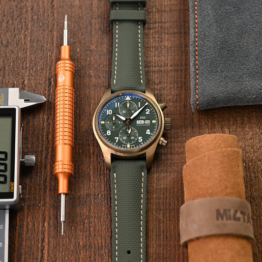 Quick-release rubber strap - You can change the strap in seconds without using any watch tools. This FKM fluoroelastomer rubber watch band collection has a quick-release spring bar mechanism, which can be installed and removed quickly and easily just with your fingertip.