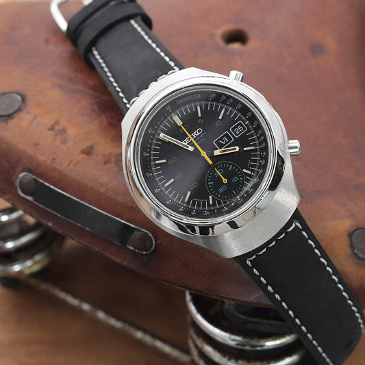 22mm MiLTAT Matt Black Nubuck Leather, Beige Stitching