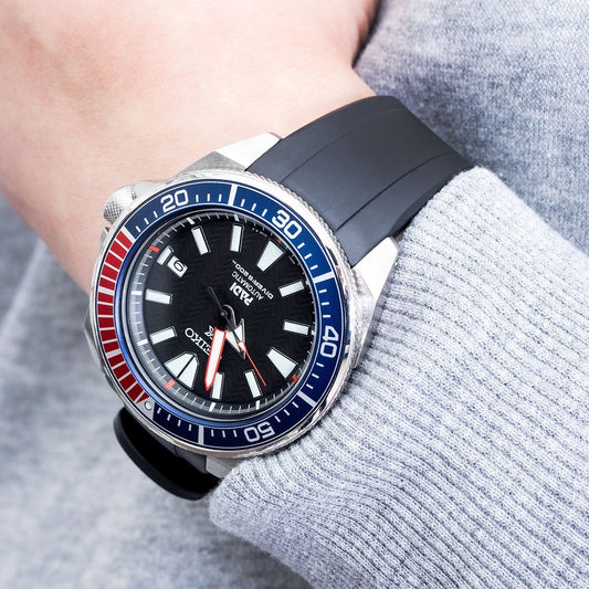 Black Curved End Rubber Strap compatible with Seiko Samurai SRPB51, PVD