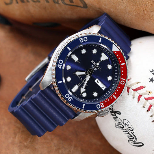 Blue Curved End Rubber compatible with Seiko Turtle SRP777, PVD