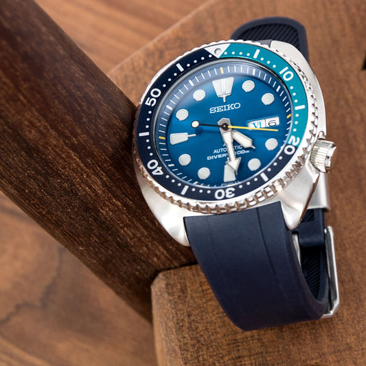 Blue Curved End Rubber compatible with Seiko Turtle SRP777