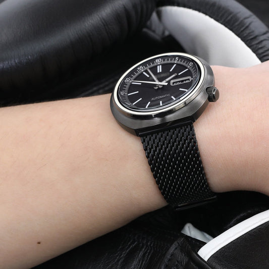 Classic Tapered Wire Mesh Band, PVD Black