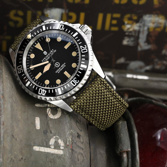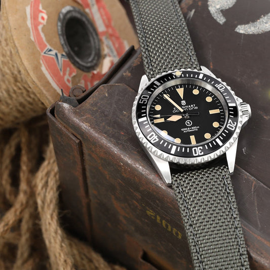 Strong Texture Woven Nylon Military Grey Watch Strap, Polished