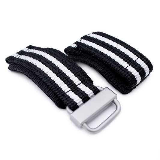 Black & White Nylon Hook-and-loop watch strap, Sandblasted