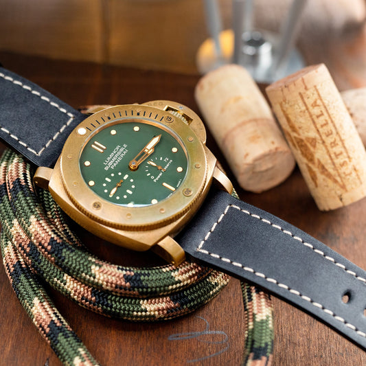 Pam Collection, Vintage Brown Horween Chromexcel Leather Watch Strap for Panerai, Beige Stitch.
