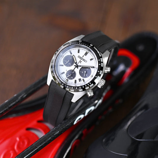 StrapXPro - Black SMX03A Rubber Strap compatible with Seiko Speedtimer SSC813 Series