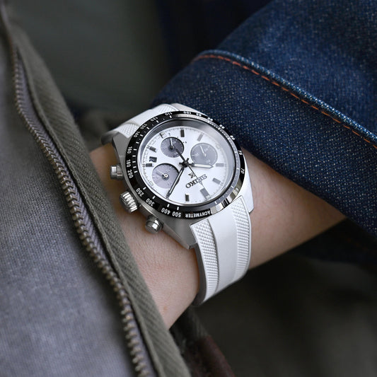 StrapXPro - White SMX03A Rubber Strap compatible with Seiko Speedtimer SSC813 Series