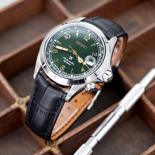 Q.R. 20mm Black CrocoCalf (Italian Croco Grain) , Semi-curved