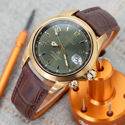 Q.R. 20mm Brown CrocoCalf (Italian Croco Grain) , Semi-curved