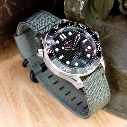 Green Quick Release Hybrid Leather FKM Rubber Watch Strap, 20mm or 22mm