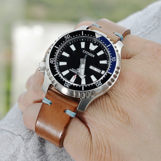 Q.R. 22mm Brown Leather Italian Handmade Racer strap, Blue St.