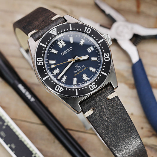 Q.R. 20mm Italian Handmade Blackish Brown Leather Watch Band, One-piece V-clasp, Beige St.