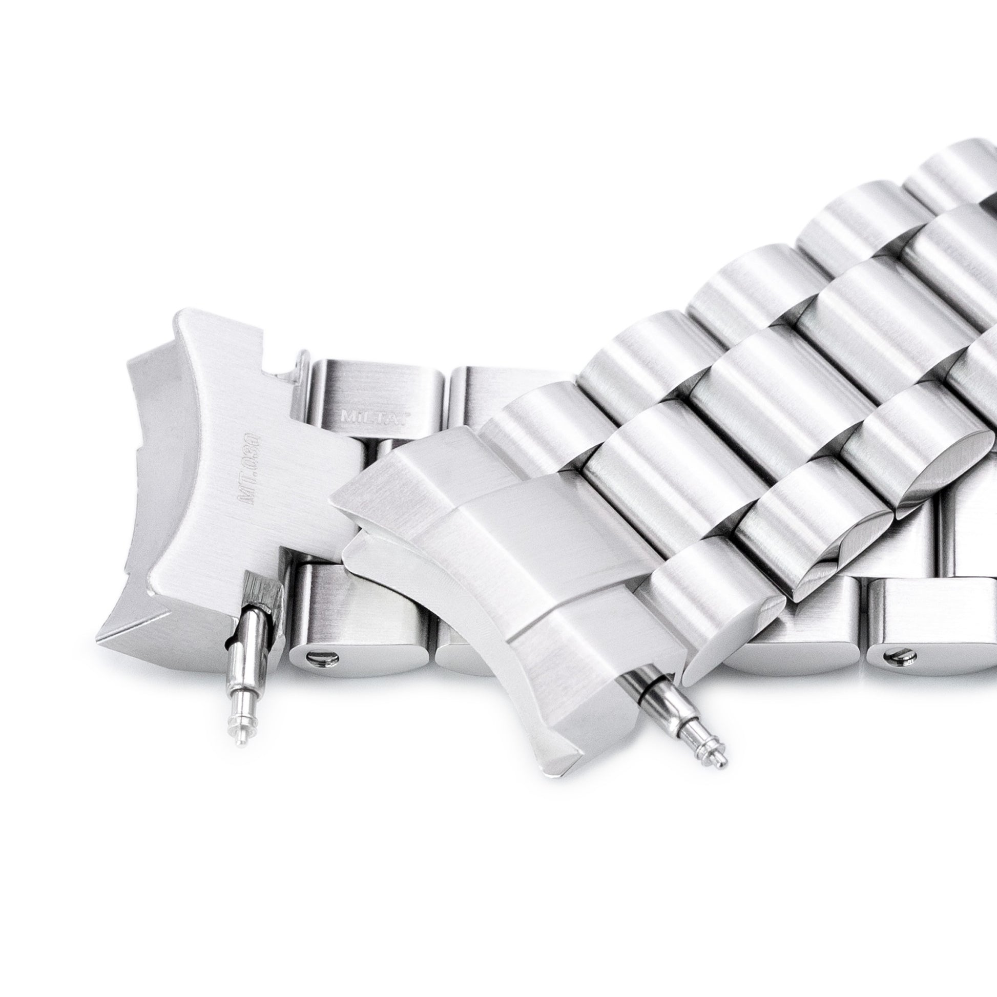 Endmill brushed solid 316L stainless steel watch bracelet is design for SEI Sumo SBDC001, SBDC003 & SBDC005 models or other 20mm lug SEI diver or sport watch case with the same curvature as the above models. Generic 2.5mm diameter Fat stainless steel spring bars included. All soild links including end links in half-moon shape are structured by screw fix adjustable details instead of common pins. An awesome replacement watch bracelet tailor made for SEI Sumo SBDC001, SBDC003 & SBDC005.