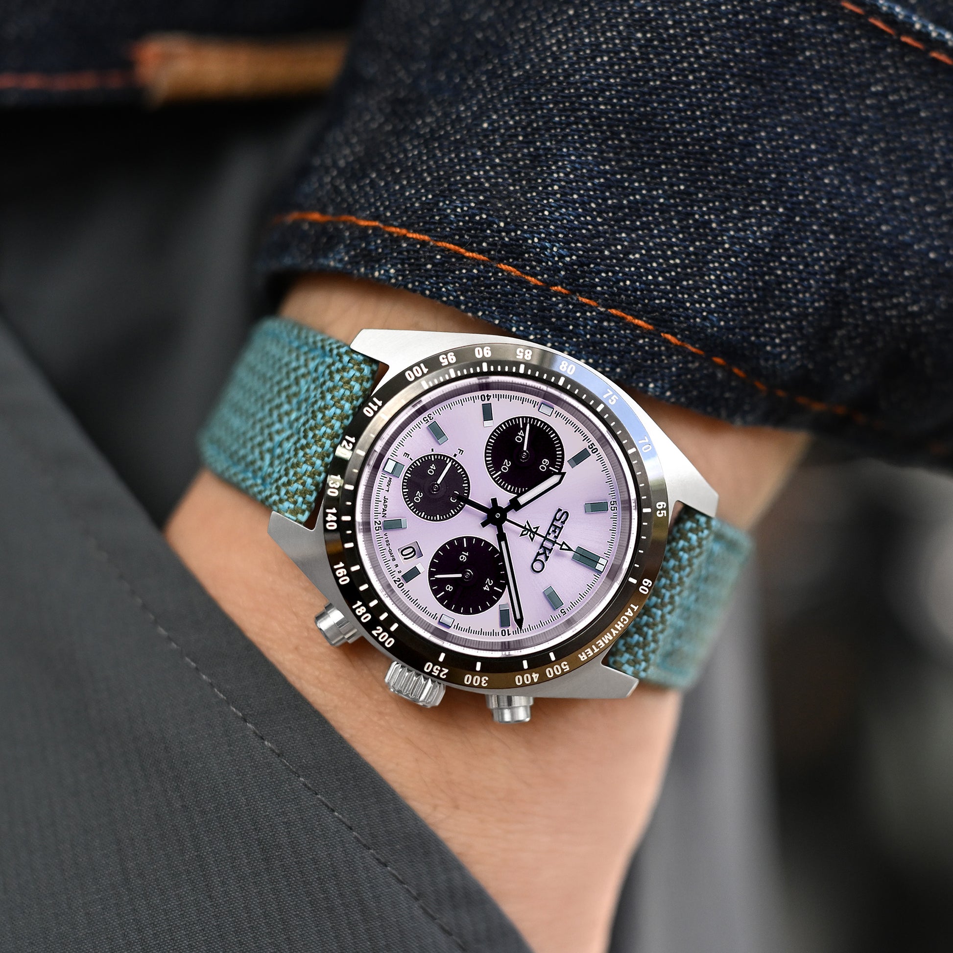 The pilot model quick release watch band in aviator vintage style was made of Revive fabric - here comes the innovative design solution here of vibrant textile made from post-consumer recycled polyester (PET) such as used plastic bottles. This eco-friendly fabric is sustainable and an excellent alternative to textile or nylon watch bands. The pilot-style revive watch band comprises mixed colors yarm, has a tapered notch, and offset 2mm on each side with a square-shaped tail. One of the strap loop band keepers and holes cover is from *Italian rebel leather, making the watch band more durable.